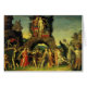 Parnassus Mars and Venus (c. 1496-1497) by Andrea Mantegna (1431-1506) is a vintage Renaissance Era fine art mythological painting. Mars (the Roman God of war or Ares the Greek God of war) and Venus (the Roman Goddess of love or Aphrodite the Greek Goddess of love) standing at the top of an arch resembling an arch of triumph. Their son Anteros stands next to Mars aiming a blowpipe at Vulcan (Venus’s husband, aka Hephaistos in Greek mythology) who has his ironworks inside the cave.