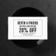 Une carte d'aiguillage de client en noir et blanc. Mettez à jour le texte de promotion pour votre offre désirée. Générer plus de ventes et de visites en encourageant vos clients à recommander leurs amis pour un service à rabais ou un produit gratuit. Idéal pour les salons de cheveux, les artistes de clous, les magasins de détail, les cosmétiques et plus encore. © 1201AM CREATIVE