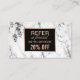 Faites une impression durable sur vos clients grâce à cette carte de référence Marbre blanc Beauty Salon. Cette carte de référence présente un arrière - plan en marbre blanc époustouflant avec un élégant texte doré, créant un look moderne et sophistiqué. Customisez le modèle avec l'image de marque de votre salon et les coordonnées à l'aide de l'outil de design de Zazzle. Remettez ces cartes de référence à vos clients existants et encouragez-les à renvoyer leurs amis et leur famille à votre salon avec une réduction ou une offre spéciale. Parfait pour tout salon de beauté qui cherche à développer sa clientèle et à récompenser ses clients fidèles.