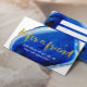 Cartes de référence en pierre d'Agate Bleu Script Or Moderne.