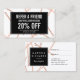 Un design amusant et attrayant de broches à bobines faux rose en chute crée un arrière - plan intrigant sur cette carte de référence élégante pour coiffeurs, salons de cheveux, consultants de beauté et plus encore. Mettez à jour la promotion pour votre propre offre unique. Ce design fait partie d'une collection de matériels marketing coordonnés pour aider à faire la marque de votre entreprise de beauté. Trouvez des cartes de visite, des cartes de rendez-vous, des certificats-cadeaux, des cartes de rack et plus sur la page de collecte correspondante. Art et design © 1201AM Design Studio | www.1201am.com