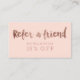Référez-vous un ami avec cette carte moderne et élégante de référence de maquillage avec la typographie moderne de brosse de style de lettrage de main dans la feuille d'or rose de faux sur un à la mode et élégant rougissent l'arrière - plan rose.