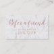 Référez-vous un ami avec cette carte moderne et élégante de référence de maquillage avec la typographie moderne de brosse de style de lettrage de main dans la feuille d'or rose de faux sur un arrière - plan de marbre blanc à la mode et élégant.