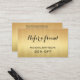 Un élégant carte de visite de référence au design minimaliste imprimé or.