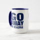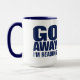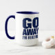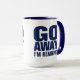 Pars, je lis les tasses de café drôles. Texte bleu.