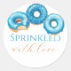 Célébrez votre journée spéciale avec ces adorables autocollants ronds personnalisables "Sprinkled with Love". Parfaits pour les baby showers, ces stickers sucrés à thème arrosé peuvent être personnalisés avec des noms, des dates ou un message spécial. Utilisez-les comme étiquettes de faveur, sceaux d'enveloppe, accents de décoration de fête ou étiquettes cadeaux pour ajouter une touche de charme et de cohésion à votre célébration. Un détail simple mais élégant qui rend votre baby shower inoubliable !