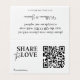 Modern Elegant Wedding Small Share the Love QR Code Tent Cards : Cette carte de code hashtag qr mariage moderne comporte un élégant script de calligraphie. Il a un code QR pour vos invités à scanner pour télécharger leurs photos sur votre site Web.