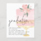 Invitation de la partie de graduation de gâteau rose budget. Un prix économique PETIT 4,5 po x 5,6 po alternatif. Disponible dans un STOCK CARTE SEMI GLOSS 110 lb qui est l'option par défaut (recommandé pour les invitations, similaire à l'épaisseur d'une carte postale), OU un STOCK PAPIER THINNER SATIN FINISH 80 lb (idéal pour les boîtiers). L'entête Graduation est dans un style d'écriture fixe avec les détails sous aligné à gauche, et partiellement superposé sur un gâteau de célébration de glamour rose pastel et or à droite. Personnalisez facilement le reste du texte avec vos détails.