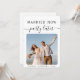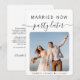 Un aménagement moderne ou une salle de mariages privée. Le devant présente votre photo et "Marié maintenant, Parti plus tard" dans un mélange de typographie simple et de script tendance. Sous votre photo, vous pouvez ajouter vos prénoms et votre date de mariage. Au contraire, vous pouvez personnaliser votre faire-part avec n'importe quel plan de célébration future et ajouter vos noms dans un script signature.