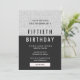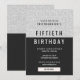 C'est une invitation de fête d'anniversaire élégante et moderne. L'invitation à la fête d'anniversaire comporte une section noire au bas de la carte avec une parties scintillant brillante en argent/blanc sur le dessus. Cette invitation serait parfaite pour les 30ème, 40ème, 50ème et 60ème anniversaires. Veuillez me contacter à claudia@claudiaowen.com si vous souhaitez customiser cette invitation de fête. Jetez un coup d'oeil à mon magasin http://www.zazzle.com/claudiaowenshop pour les modèles correspondants, y compris les invitations de fête, les plateaux de service, les dessous de verre, les serviettes et plus encore. Conception par claudiaowen.com