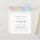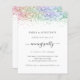 Un rapport qualité-prix BUDGET alternative sur une taille plus petite 4,5 x 5,6" semi-brillant poids 110lbs, qui est d'une épaisseur similaire à une carte postale (cependant ne convient pas à l'utilisation comme carte postale.) VEUILLEZ NOTER qu'il y a UN invitation par feuille. Budget Rainbow Parties scintillant Soirée de mariage Invitation. Faux parties scintillant borde le haut de chaque côté, et "soirée" est dans un script élégant avec des swashes. Personnalisez facilement le texte à vos propres détails.