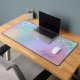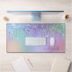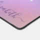 Tapis de bureau mignon avec fausse parties scintillant arc-en-ciel couleur unicorne gouttes sur l'arrière - plan arc-en-ciel de violet, rose, bleu, vert, orange et jaune. Personnalisez avec votre nom dans un script violet élégant avec des swashes.