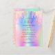 Une invitation à la fête d'anniversaire virtuelle féminine et féminine 21ème (ou tout âge). Devant : Un arrière - plan de couleur arc-en-ciel en violet, rose, or rose et vert menthe. Décoré avec des gouttes de parties scintillant en violet, rose et faux or. Personnalisez et ajoutez un nom et des détails du parti. Virtual et le nom sont écrits avec un script de style manuscrit, des lettres de couleur violet. Dos : couleurs arc-en-ciel et gouttes de parties scintillant faux. Conseil : Si vous ne voulez pas qu'il ressemble à une carte postale, cliquez sur customiser, allez à l'arrière et retirez le séparateur et le timbre postal.