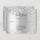 Un arrière - plan faux argenté, décoré de parties scintillant scintillantes de faux argent. Personnalisez et ajoutez la réponse par date et vos noms. 1 feuille = 1 rsvp