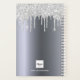 Un arrière - plan faux argenté avec d'élégantes gouttes de parties scintillant faux argent, la peinture goutte à goutte. Personnalisez et ajoutez un nom, une lettre monogramme et un titre. Le nom est écrit en blanc avec un grand script de style à la main moderne avec des swashes. Texte gris et noir. Pour que les swashes ne suppriment que le nom de l'échantillon, laissez les espaces ou émoticônes devant et après le nom. Parfait pour l'école, le travail ou l'organisation de votre vie personnelle/familiale.