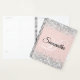 Faux parties scintillant argent brillant avec étincelles contre un arrière - plan couleur vive rose pâle. On peut customiser le monogramme de calligraphie noir et blanc au centre. Tous les éléments scintillants et brillants de ce design girly moderne sont des graphismes numériques. Un cadeau précieux pour son anniversaire.