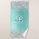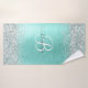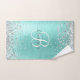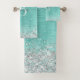 Personnalisez facilement ce design chic branché de serviettes de bain avec une jolie parties scintillant en faux argent brillant sur un arrière - plan métallique brossé turquoise.
