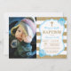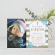 Baptême Parties scintillant bleue et or Invitation avec photo personnalisée. Baptême de garçon. Première communion. Brisant. Dédication infantile. Granges or et blanc. Flore Bleue. Pour plus de personnalisation, cliquez sur le bouton "Customiser" et utilisez notre outil de conception pour modifier ce modèle.