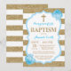 Parties scintillant Baptême Bleu et or Invitation