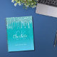 Une mer bleue turquoise, arrière - plan en dégradé de parties scintillant vert océan. Décoré avec des gouttes de parties scintillant, la peinture goutte à goutte. Personnalisez et ajoutez un nom, des lettres monographiques et un titre/année. Un script de style moderne en lettres manuscrites, en lettres blanches et bleues