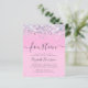 Invitation à la fête du 14e anniversaire pour une fille abordable avec un hologramme brillant violet, rose et argent faux parties scintillant confetti contre un arrière - plan rose et "quatorze" dans un script gris doux et tendance avec des swashes.