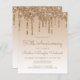Cette invitation branchée à la fête du 50e anniversaire du mariage présente une bordure brillante en or faux parties scintillant et un arrière - plan sombre. Les mots "50e anniversaire" et les noms du couple apparaissent dans le script décontracté d'écriture manuscrite en or, avec le reste du texte personnalisable en or sans serif. La même conception de goutte de parties scintillant d'or apparaît à l'envers.