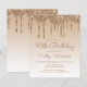 Cette invitation branchée à 16e anniversaire présente une bordure brillante de parties scintillant en faux or et un arrière - plan sombre. Les mots "16e anniversaire" et le nom de l'invité d'honneur apparaissent dans le script décontracté d'écriture manuscrite en or, le reste du texte personnalisable en or sans serif. La même conception de goutte de parties scintillant d'or apparaît à l'envers.