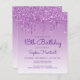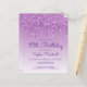 Cette invitation branchée à la fête du 18e anniversaire présente une bordure brillante de faux parties scintillant violet et un arrière - plan violet sombre. Les mots "18ème anniversaire" et le nom de l'invité d'honneur apparaissent dans un script décontracté d'écriture violet, le reste du texte personnalisable dans la police sans serif. La même conception de goutte de parties scintillant violette apparaît à l'envers.