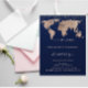 Cette carte du monde scintillante sur invitation du baby shower bleu marine. Ces invitations de douches pour bébés sont facilement customisées pour votre événement en ajoutant simplement vos détails.