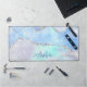 Personnalisez ce tapis de bureau chic monogrammed pour ajouter du glam et du scintillement à votre espace de travail. Le design est composé de marbre d'agate bleu aqua pastel et violet clair avec des reflets de parties scintillant argentés et brillant partout.