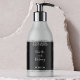 Cet élégant étiquette produit pour bouteilles cosmétiques est doté d'un arrière - plan noir avec une bordure en feuille de parties scintillant en faux argent. Ce étiquette contient de l'espace pour votre nom de produit, nom commercial, poids du produit, ingrédients, instructions, médias sociaux et adresse professionnelle.