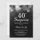 Parties scintillant Argent Surprise 40e anniversaire Invitation Card. Anniversaire adulte. Arrière - plan de la Parties scintillant d'argent Bokeh. 13ème 15ème 16ème 18ème 10ème 21ème 30ème 40ème 60ème 70ème 80ème 90ème 100ème. N'Importe Quel Âge.