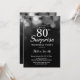 Parties scintillant d'argent Surprise 80e anniversaire Invitation Card. Anniversaire adulte. Arrière - plan de la Parties scintillant d'argent Bokeh. 13ème 15ème 16ème 18ème 10ème 21ème 30ème 40ème 60ème 70ème 80ème 90ème 100ème. N'Importe Quel Âge.