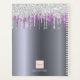 Un arrière - plan à l'aspect faux argent avec élégantes gouttes de parties scintillant violet et faux argent, look goutte à goutte de peinture. Modèle pendant un an. Personnalisez et ajoutez un titre, un nom d'entreprise, des coordonnées sur le devant. Le titre du livre est écrit en blanc avec un grand script de style à la main moderne. Pour que les swashes ne suppriment que le nom de l'échantillon, laissez les espaces ou émoticônes devant et après le nom. Un planificateur de rendez-vous, carnet de réservation pour les maquilleurs, les designers de cheveux, les salons de coiffure et de beauté.