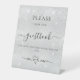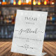 Arrière - plan métallique argent Faux, décoré avec de la poussière de parties scintillant faux argent. Avec le texte : S'il vous plaît signer notre livre d'or. Un panneau sur le plateau demandant aux clients de signer et de déposer leur livre d'or.