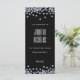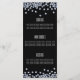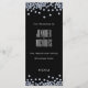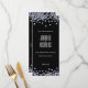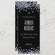 Un menu simple mais beau de réception de mariage moderne en noir et blanc avec des accents bleus. Sur les bords supérieur et inférieur de la carte se trouvent des étincelles de parties scintillant à effet de diamant.