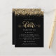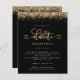 Parties scintillant Or N'Importe Quel Script Age Anniversaire Fête Invitation noir. Un prix économique PETIT 4,5 po x 5,6 po alternatif. Disponible dans un STOCK CARTE SEMI GLOSS 110 lb qui est l'option par défaut (recommandé pour les invitations), OU un STOCK PAPIER THINNER SATIN FINISH 80 lb (idéal pour les boîtiers). Les enveloppes sont en option et légèrement plus grandes que la taille de la carte. Noir et or Classé avec une bordure de parties scintillant en faux or au sommet de chaque côté, et Célébrez dans un ensemble d'art avec d'élégants swashes. Personnalisez facilement le reste du texte à vos propres détails. Vous pouvez également modifier le texte et les couleurs arrière - plans via l'option customiser plus si vous le souhaitez.