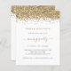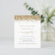 Un rapport qualité-prix BUDGET alternative sur une taille plus petite 4,5 x 5,6" semi-brillant poids 110lbs, qui est d'une épaisseur similaire à une carte postale (cependant ne convient pas à l'utilisation comme carte postale.) VEUILLEZ NOTER qu'il y a UN invitation par feuille. Parties scintillant d'or Budget Soirée de mariage Invitation. Faux parties scintillant borde le haut de chaque côté, et "soirée" est dans un script élégant avec des swashes. Personnalisez facilement le texte à vos propres détails.