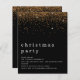 Parties scintillant d'or Confetti fête de Noël Invitation noire. Il y a deux options de papier à choisir pour cette taille (4,5 x 5,6 po) dans la plage Budget. Pour ce produit, je recommanderais le semi-brillant qui est un stock de carte de 110 gsm, semblable en épaisseur à une carte postale. L'option Satin est un papier beaucoup plus fin 80gsm. La valeur par défaut est semi-brillante. VEUILLEZ NOTER qu'il y a UN par feuille. Les enveloppes sont en option et légèrement plus grandes que la taille de la carte. L'en-tête est grand en minuscule élégant avec les détails en dessous. Beaucoup d'espace pour une ambiance contemporaine et une bordure de parties scintillant en or de style confetti au sommet des deux côtés. Personnalisez facilement le texte à vos propres détails.