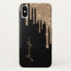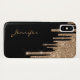 Élégant étui de téléphone fait en noir avec des graphiques d'une parties scintillant dorée qui ressemble à de la peinture goutte à goutte, du haut du coque. Personnalisez le texte pour vous-même ou comme une idée cadeau chic pour elle.