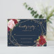 Ces parties scintillant d'or géométrique et des cartes rouges tropicales rsvp sont parfaites pour un mariage rustique. Le design artistique bordo marsala présente des roses d'aquarelle, verts, roses, bordeaux et roux assortis de verdure soigneusement disposés autour de cadres d'or géométriques dans un bouquet de fleurs gracieux et radieux.