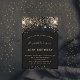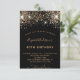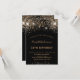 Une invitation moderne, élégante et glamour pour une fête d'anniversaire de 40ème (ou tout âge). Un arrière - plan noir décoré de fausse parties scintillant et brillant. Le nom est écrit avec un script de style à la main de couleur dorée moderne. Personnalisez et ajoutez les détails de votre fête.