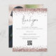 Un rapport qualité-prix BUDGET alternative sur une taille plus petite 4,5 x 5,6" semi-brillant poids 110lbs, qui est d'une épaisseur similaire à une carte postale (cependant ne convient pas à l'utilisation comme carte postale.) VEUILLEZ NOTER qu'il y a UN par feuille. Rose budget Parties scintillant or QR Code Mariage Merci. Ajoutez votre code QR à votre galerie de photos mariages au verso en remplaçant le code QR de l'exemple. Vous pouvez créer des codes QR gratuitement en ligne. Il suffit de chercher "créateur de code QR" et beaucoup d'options viennent créer gratuitement. Une touche de glamour avec des bordures de parties scintillant en or rose et un ensemble de style manuscrit stylisé pour le Merci. Sur le dos, remplacez l'exemple de photo par votre préféré de la journée comme souvenir pour vos invités. Personnalisez facilement le reste du texte avec votre message et vos noms.