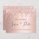 Une petite fille et tendance Enregistrer la carte Date pour une Quinceañera, 15e anniversaire fête. Un arrière - plan rose à l'aspect faux métallique orné de parties scintillant en or faux rose. Modèles pour une date, un nom et un texte. Lettres de couleur or rose foncé. Le texte : Save the Date est écrit avec un grand script de style à la main tendance.