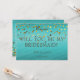 Cette parties scintillant en or vert 5" x 7" belle carte d'invitation de demoiselle d'honneur. C'est mieux pour la mariée, qui aime les couleurs or et le pois. C'est une façon vraiment amusante de demander à votre amant ou à votre petite amie de faire partie de votre mariage.