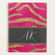 Cet élégant planificateur personnalisé présente un design poster de animal avec des rayures de tigre de parties scintillant dorée sur un arrière - plan de style métallique rose chaud. Un échantillon d'initiales monographiques est imprimé sur une bannière noire. Vous pouvez personnaliser le planificateur pour inclure vos propres initiales ou d'autres textes personnalisés. Les rayures de tigre courent horizontalement à travers le boîtier téléphonique et l'or brillant contre l'arrière - plan semble glamour.