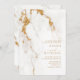 Un arrière - plan abstrait qui évoque le marbre veiné à la parties scintillant dans les tons dorés à travers le beige et le blanc doux est la toile de fond de textes élégants et de mises en page design moderne dans les pièces de cette belle suite mariage. L'invitation présentée ici comporte un texte aligné à droite avec une bordure en marbre élégante. Recherchez ID816 pour voir d'autres pièces et choix de couleurs pour cet ensemble.