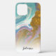 Une coque iphone cool et élégante avec un motif en marbre rose, turquoise aqua, en faux parties scintillant dorée. Ajoutez votre nom ou monogramme à personnaliser.