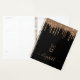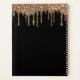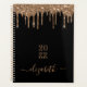 Un élégant arrière - plan noir avec des gouttes de parties scintillant en faux or, look goutte de peinture. Modèle pendant un an (à l'envers) Personnalisez et ajoutez un nom. Le nom est écrit avec un grand script doré de style moderne et écrit à la main. Parfait pour l'école, le travail ou l'organisation de votre vie personnelle/familiale. Pour que les swashes ne suppriment que le nom de l'échantillon, laissez les espaces ou émoticônes devant et après le nom.
