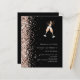 Pour une soirée d'anniversaire élégante de 50ème (ou tout âge). Un arrière - plan noir classique. Décoré avec parties scintillant en faux or rose et une paire de flûtes. Personnalisez et ajoutez un nom et des détails du parti. 1 feuille = 1 invite imprimé bord à bord.